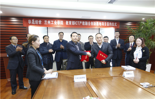 11月20日,兰州工业学院和中兴通讯“教育部ICT产教融合创新基地”合作签约仪式在北京华晟经世信息技术有限公司举行,校长王华栋、副校长魏军、校长助理雷在福,北京华晟董事长张勇、副总裁杨建出席签字仪式,教务处、电子信息工程学院、经济管理学院和艺术设计学院负责人参加了签约仪式。