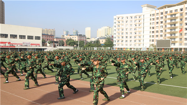 9月15日上午,学校2017级新生军训结训典礼在田径运动场隆重举行。全体校领导,各相关职能部门负责人,各学院党总支部书记、院长、辅导员、承训单位教员以及2017级全体新生参加了典礼,副校长魏军主持典礼。