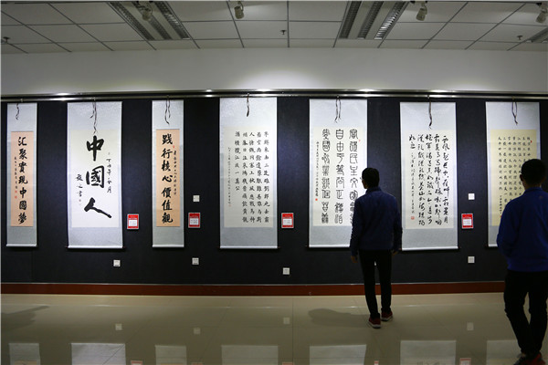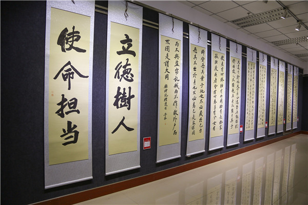 10月17日,由校工会、校团委、艺术设计学院主办,职工书画协会、劲草书画协会承办的“喜迎党的十九大”师生书画展在图书馆展厅开展。校领导俞子泓、魏军、廉志端,总会计师王多兴,校长助理雷在福及200多名学生参加开幕式。