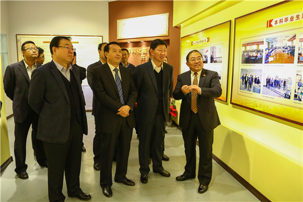 会后,苏海明一行在校领导陪同下参观了我校校史馆,观看了我校喜迎十九大教职工书画展。