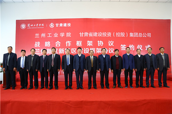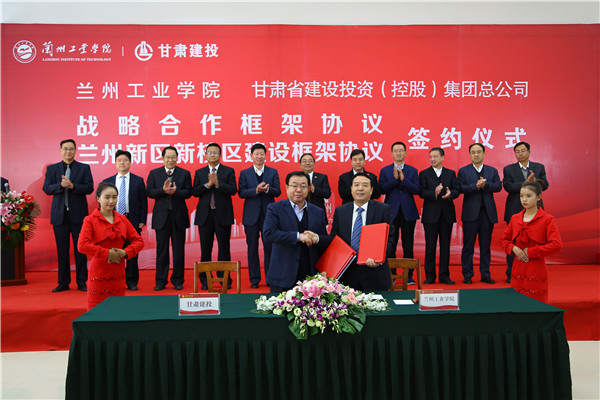 随后,在欢快的乐曲声中,校长王华栋、甘肃省建设投资(控股)集团总公司总经理苏跃华分别代表双方签订了《甘肃省建设投资(控股)集团总公司与兰州工业学院战略合作框架协议》。