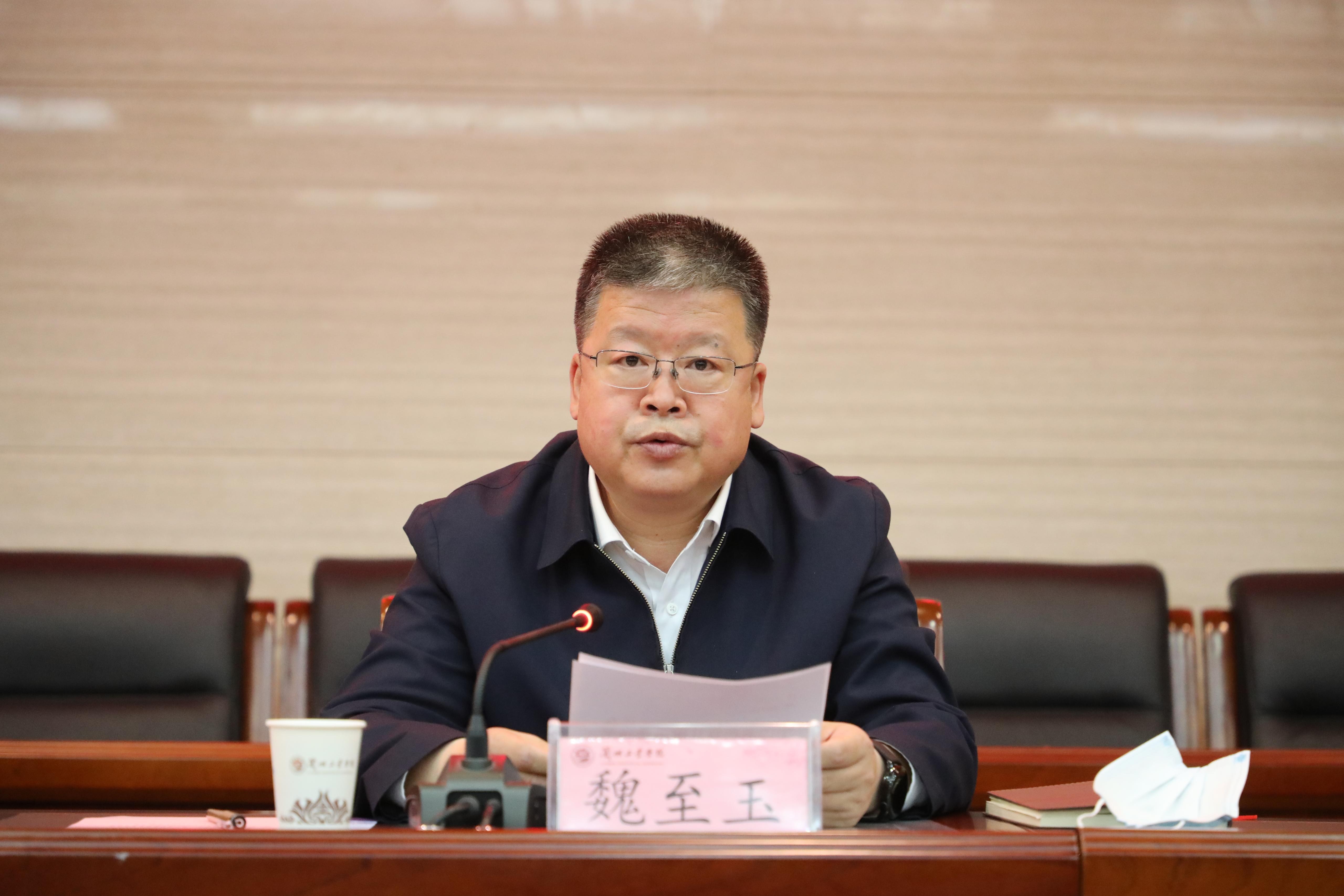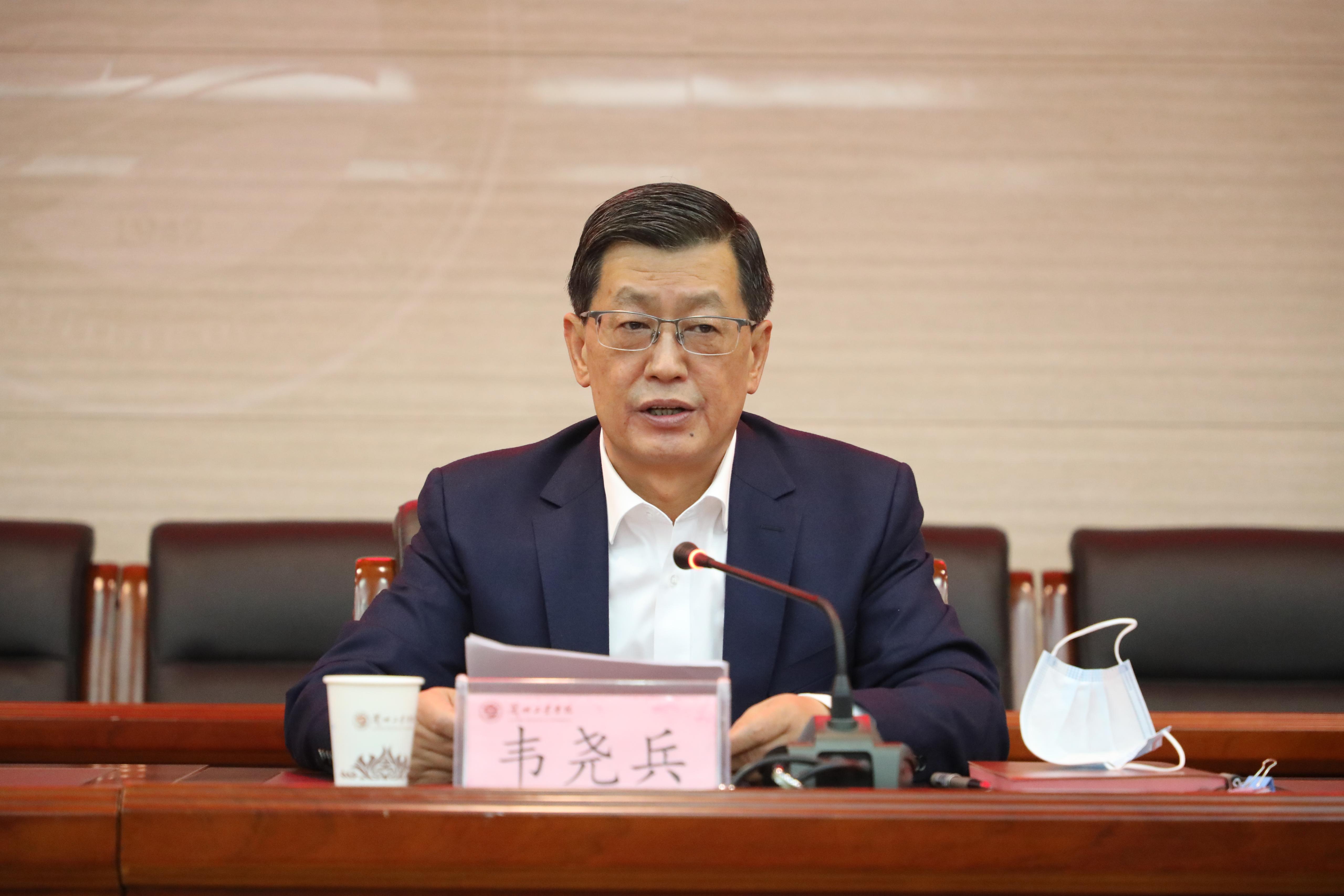 新任党委书记韦尧兵在发言中对俞子泓同志在校任职期间的工作给予了高度肯定,并向一届届班子成员、一代代工院人所做出的贡献表达了崇高的敬意和衷心的感谢。他表示,面对新岗位、新使命、新挑战,将以政治建设为统领,持之以恒加强和改进学校党的建设;以人才培养为核心,驰而不息推进学校事业高质量发展;以民主集中为原则,坚持完善党委领导下的校长负责制;以安全稳定为保障,坚定不移深化治理体系和治理能力建设;以务实清廉为准绳,慎终如始营造风清气正的校园生态。在新的岗位上,将不负重托、接续奋斗,团结带领广大师生员工,秉承“开物成务、启智求真”校训,弘扬“坚韧顽强、质朴无私、包容创新、和谐奋进”办学精神,扎实工作、奋力拼搏,以更高的标准、更严的要求、更实的作风在新的奋斗征程中,以新作为书写与时俱进新篇章,以新担当开创高质量发展新局面,为新时代兰州工业学院事业发展勇毅前行、赓续奋斗!